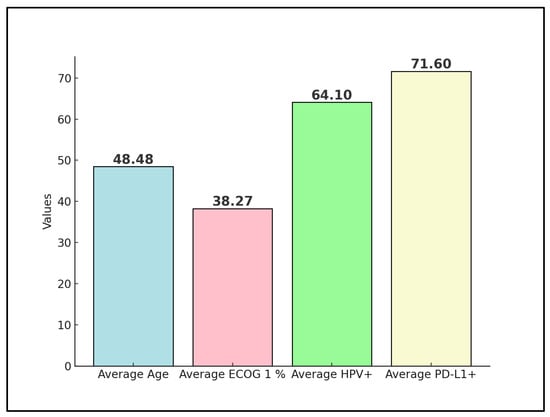Naumann et al. [] included patients predominantly in stages IVA-IVB (84.2%), with all patients having SCC, reflecting a highly uniform histological profile. Metastasis was commonly observed in lymph nodes (63.2%) and lungs (42.1%). The high HPV positivity rate (83.3%) and PD-L1 positivity (62.5%) suggest a significant immunotherapy target population. All patients received prior chemotherapy, and a large majority (89.5%) underwent radiotherapy, indicating a pre-treated population with advanced disease.