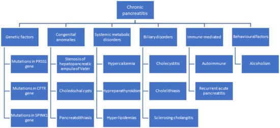 - Brock, C. Pathophysiology of Chronic Pancreatitis. World J. Gastroenterol. 2013, 19, 7231. [Google Scholar] [CrossRef] [PubMed]