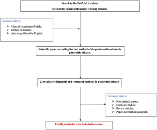 - Saghir, S.M.; Mashiana, H.S.; Mohan, B.P.; Dhindsa, B.S.; Dhaliwal, A.; Chandan, S.; Bhogal, N.; Bhat, I.; Singh, S.; Adler, D.G. Efficacy of Pancreatoscopy for Pancreatic Duct Stones: A Systematic Review and Meta-Analysis. World J. Gastroenterol. 2020, 26, 5207–5219. [Google Scholar] [CrossRef] [PubMed]