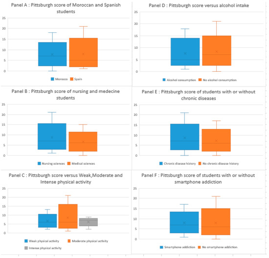 In conclusion, the study provided valuable insights into the factors affecting sleep quality among medical students from two culturally different countries. The findings indicated a higher prevalence of poor sleep quality among Moroccan students compared to their Spanish counterparts. Importantly, a robust association was identified between engagement in nursing studies and poorer sleep quality. Furthermore, the study underscored a significant association between the presence of chronic diseases, intense physical activity and smartphone addiction with sleep quality, which all presented a significant link to a deterioration in sleep quality. In the multivariate analysis, a notable correlation persisted between poor sleep quality and factors such as the country of study, involvement in nursing studies and the presence of chronic diseases. These results highlight the importance of considering these factors in analytical studies aimed at enhancing sleep quality among students, with potential implications for public health interventions and educational support programs.