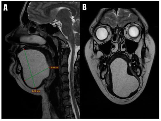 - Nitnaware, A.Z.; Sakhare, P.T.; Kapre, G.M. Cystic hygroma with extensive tongue involvement. Indian J. Otolaryngol. Head Neck Surg. 2011, 63, 89–92. [Google Scholar] [CrossRef] [PubMed] [PubMed Central][Green Version]