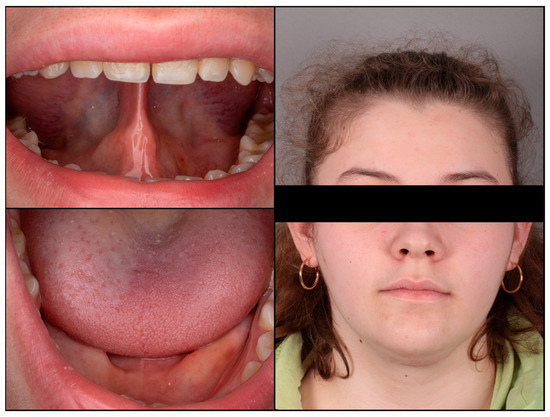 - Berbel, P.; Ostrosky, A.; Tosti, F. Large Sublingual Dermoid Cyst: A Case of Mandibular Prognathism. Craniomaxillofac. Trauma Reconstr. 2016, 9, 345–348. [Google Scholar] [CrossRef] [PubMed] [PubMed Central]