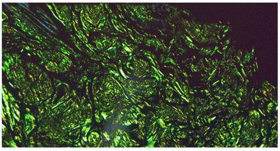 At our clinic, for a diagnosis of certainty regarding LA, an incisional biopsy was performed regarding the typical infiltrated plaques on the lower limbs. The histopathological investigations reported typical LA findings, such as the deposition of amyloid material at the papillary dermis, beneath the dermo-epidermal junction; there were also some areas with inconsistency regarding the melanic pigment and diffuse inflammatory infiltrate at the middle and superficial dermis. The epidermis was not interested in this infiltration and acts as an innocent bystander with acanthosis, hyperkeratosis, and elongation of the epidermal ridges (Figure 3, Figure 4 and Figure 5). With polarized microscopy, it was possible to appreciate the amyloid deposits beneath the dermo-epidermal junction (Figure 6).