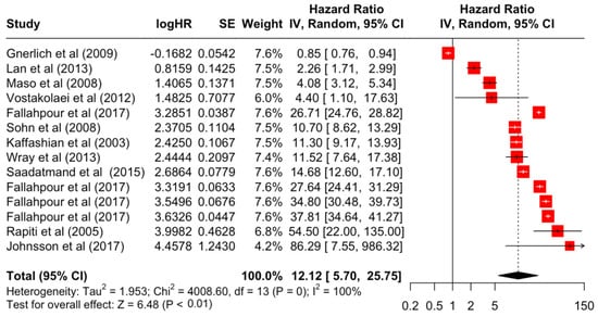 | Progesterone receptor | Positive | 468.94 | 12 | <0.001 | 97% | very high |