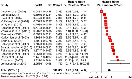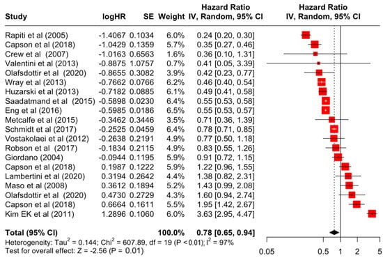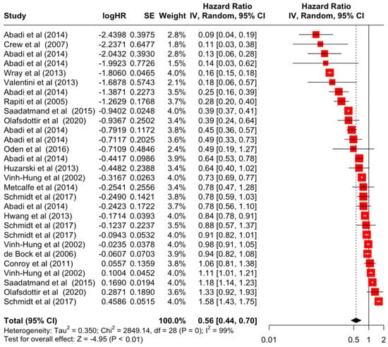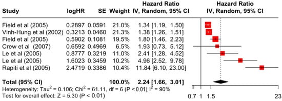 3.2. Pooled Effects of Breast Cancer-Specific Survival