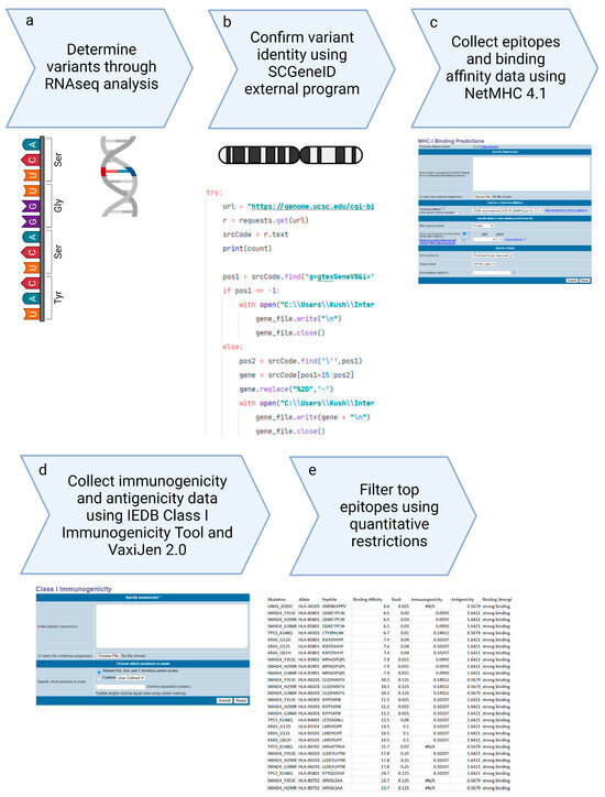 We have developed an automation of the peptide vaccine design process using web scraping and API tools [24,25]. Implementation of such software would further simplify the personalized cancer vaccine process. Additionally, the use of these programs would allow for the prediction of MHC class II epitopes as well. Furthermore, moving the RNAseq analysis process from a cloud-based solution using Partek Flow to a hardware process using Python or R would allow for complete automation of the personalized vaccine design process. Given such a scaled program and processes, the only limitation to the vaccine design process would be the time to sequence a patient’s tumor tissue.