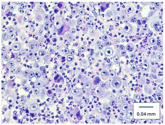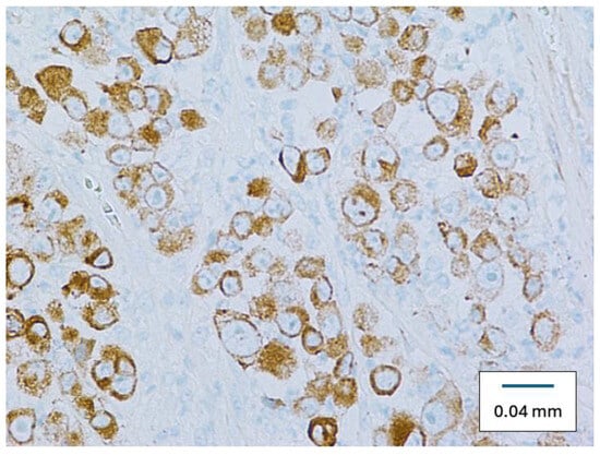 Distinguishing poorly differentiated carcinoma from dedifferentiated tumors, such as lymphoma, melanoma, and mesenchymal tumors, can be challenging. Diagnostic hurdles include overlapping features and shared morphologic and immunophenotypic characteristics. For instance, melanoma can exhibit epithelioid features at the microstructural level, and while cytokeratin positivity may be observed, diffuse positivity is infrequent. Furthermore, metastatic melanoma has the potential to undergo complete dedifferentiation, resulting in lost expression of all melanocytic markers, frequently leading to misdiagnoses as poorly differentiated carcinoma []. Before the routine use of immunohistochemistry in clinical practice, many poorly differentiated carcinomas were treated with cisplatin. Studies, such as the one conducted by Hainsworth, have shown that few lesions initially diagnosed as poorly differentiated carcinoma and responded to cisplatin therapy were subsequently re-evaluated and confirmed to be cases of melanoma [].
