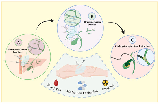 - MacCormick, A.; Jenkins, P.; Gafoor, N.; Chan, D. Percutaneous transcystic removal of gallbladder and common bile duct stones: A narrative review. Acta Radiol. 2022, 63, 571–576. [Google Scholar] [CrossRef]
