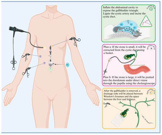 More than twenty years ago, the quality of surgical procedures was primarily evaluated based on speed [1]; however, postoperative retrospective studies [2] have shown that patients often have poor prognoses. This is because overly rapid surgeries do not allow sufficient time to ensure the complete removal of lesions, leading to high recurrence rates [3]. Additionally, large surgical incisions require longer recovery times, increase the risk of infection, and affect cosmetic outcomes. To address these issues, significant advancements have been made in minimally invasive techniques. Over the past decade, precision and minimal trauma have become the new standards for evaluating surgical quality [4]. For example, in the UK, over 70,000 cholecystectomies are performed annually [5], with the majority being completed laparoscopically, provided the patient has no contraindications [6]. Furthermore, with continuous improvements in endoscopic functions and updates in visualization equipment, an increasing number of minimally invasive stone extraction techniques have been developed, offering patients tailored surgical options. The inherent advantages of minimally invasive techniques, such as precision and minimal trauma, have greatly improved patient outcomes since their introduction [7,8,9,10,11,12,13].