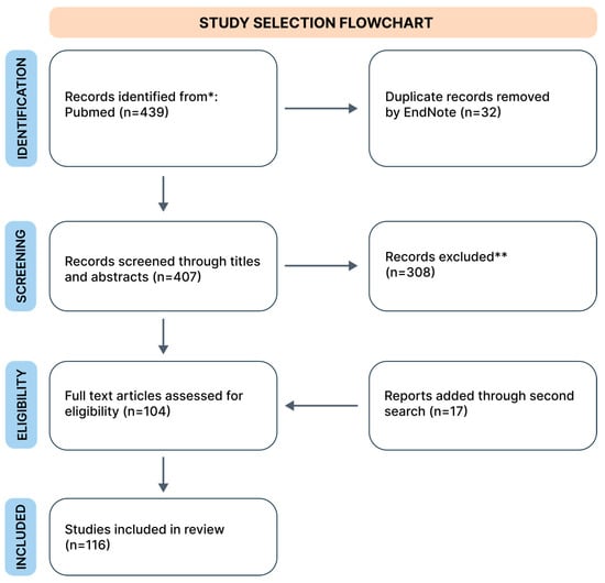Flowchart of search strategy. * Due to frequent gaps in the PubMed database regarding selected forms of treatment, we included older studies if, after consultation between two authors, the study was deemed crucial (both authors indicated “yes” during the inclusion voting (“yes” or “no”). ** In this step, despite excluding studies that did not meet our inclusion criteria, we removed duplicate studies missed by the automated tool.