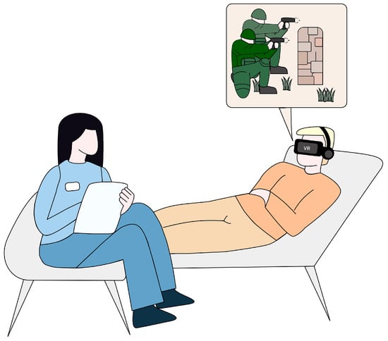 A visual example of the use of VR-supported exposure therapy for PTSD.