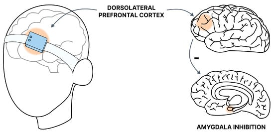 rTMS encompasses various protocols, including deep TMS (dTMS) and theta burst stimulation (TBS) [109]. Furthermore, based on the type of stimulation, it is categorized into low-frequency stimulation (<1 Hz) LF-rTMS, which has an inhibitory effect, and high-frequency stimulation (>5 Hz) HF-rTMS, which leads to the excitatory impacts in the brain [110]. The authors propose that the inhibitory and excitatory effects stem from long-term synaptic potentiation (LTP) and long-term synaptic depression (LTD). dTMS is a method used to stimulate deeper brain structures by employing coils that generate a magnetic field with greater penetration capacity. Theta burst stimulation (TBS) mimics the brain’s natural theta rhythm observed in the hippocampus, involving a sequence of high-frequency stimulations (3 pulses of 50 Hz) repeated with an interstimulus interval (ISI) of 200 ms (5 Hz). TBS offers more consistent results than rTMS, owing to its standardized intensity and pulse settings. In contrast, rTMS, unlike single-pulse TMS, can modulate cortical activity beyond the stimulation period, likely due to prolonged patient exposure. This characteristic renders rTMS a promising alternative for treating neurological and psychiatric disorders [110]. The dorsolateral prefrontal cortex (DLPFC) plays a crucial role in monitoring information stored in working memory [111]. It participates in selecting sensory information and cognitive responses, influencing emotional reactivity by modifying higher-order perceptual attention systems [112].