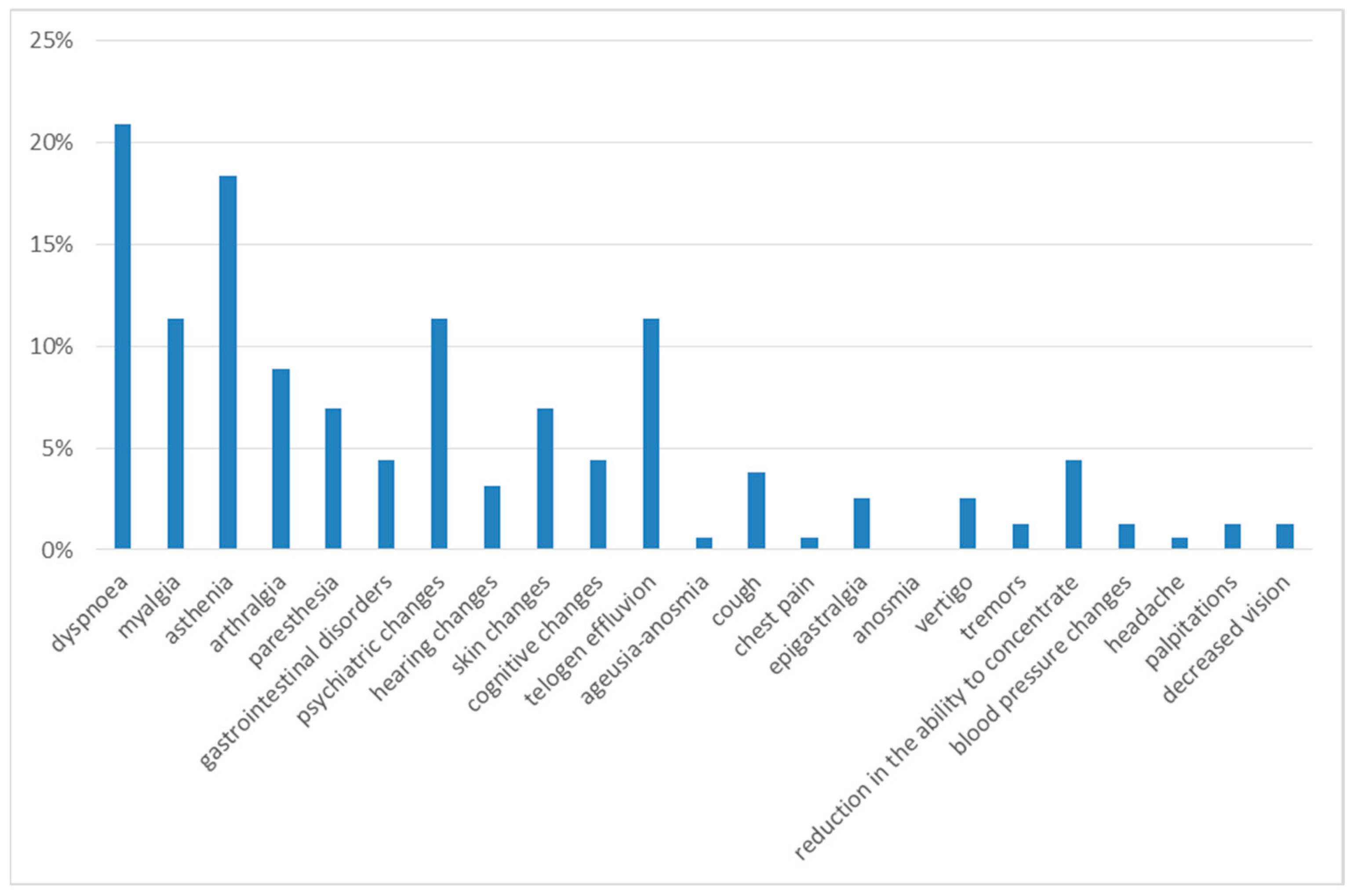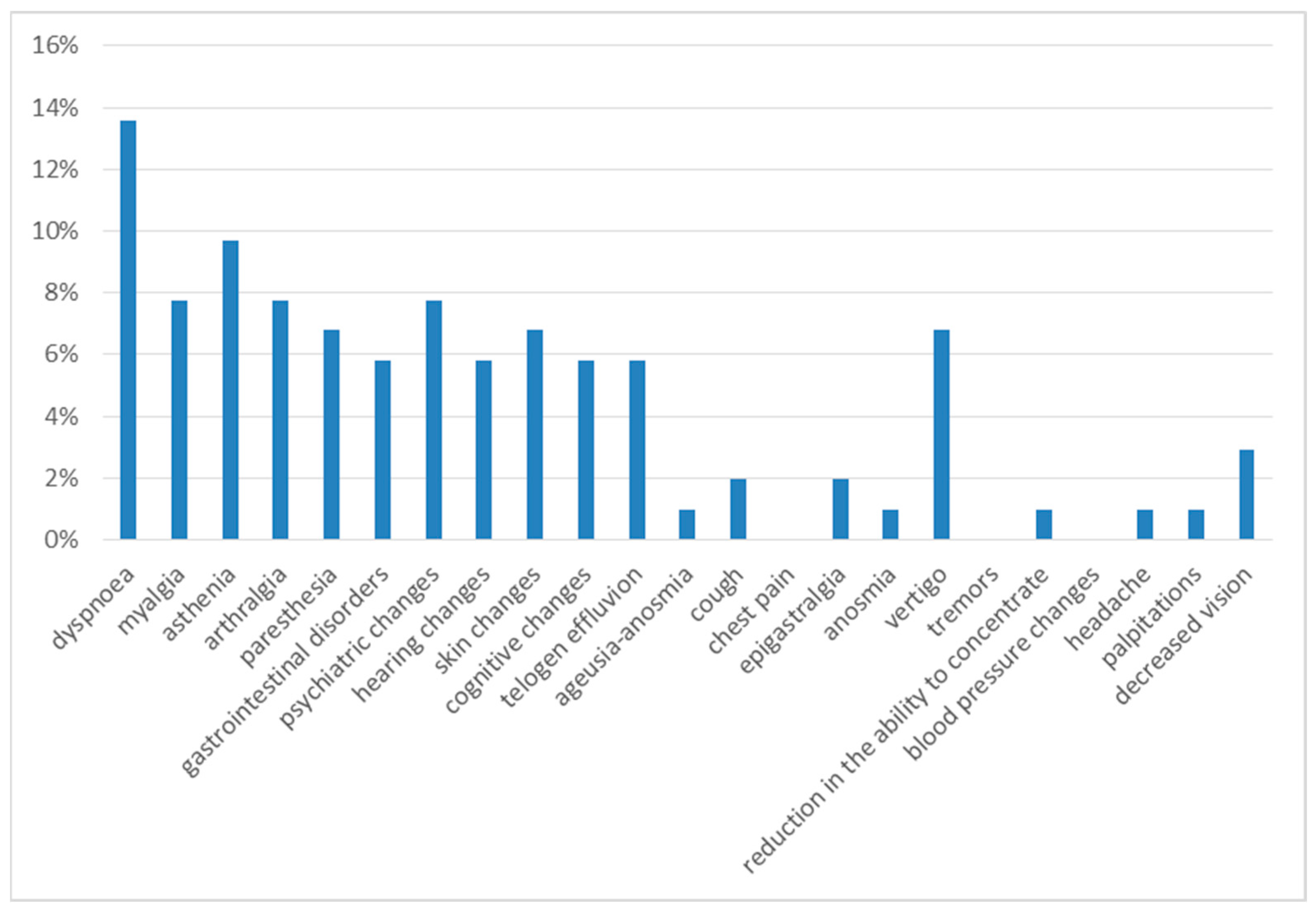 - Carfì, A.; Bernabei, R.; Landi, F.; Gemelli Against COVID-19 Post-Acute Care Study Group. Persistent Symptoms in Patients After Acute COVID-19. JAMA 2020, 324, 603–605. [Google Scholar] [CrossRef]