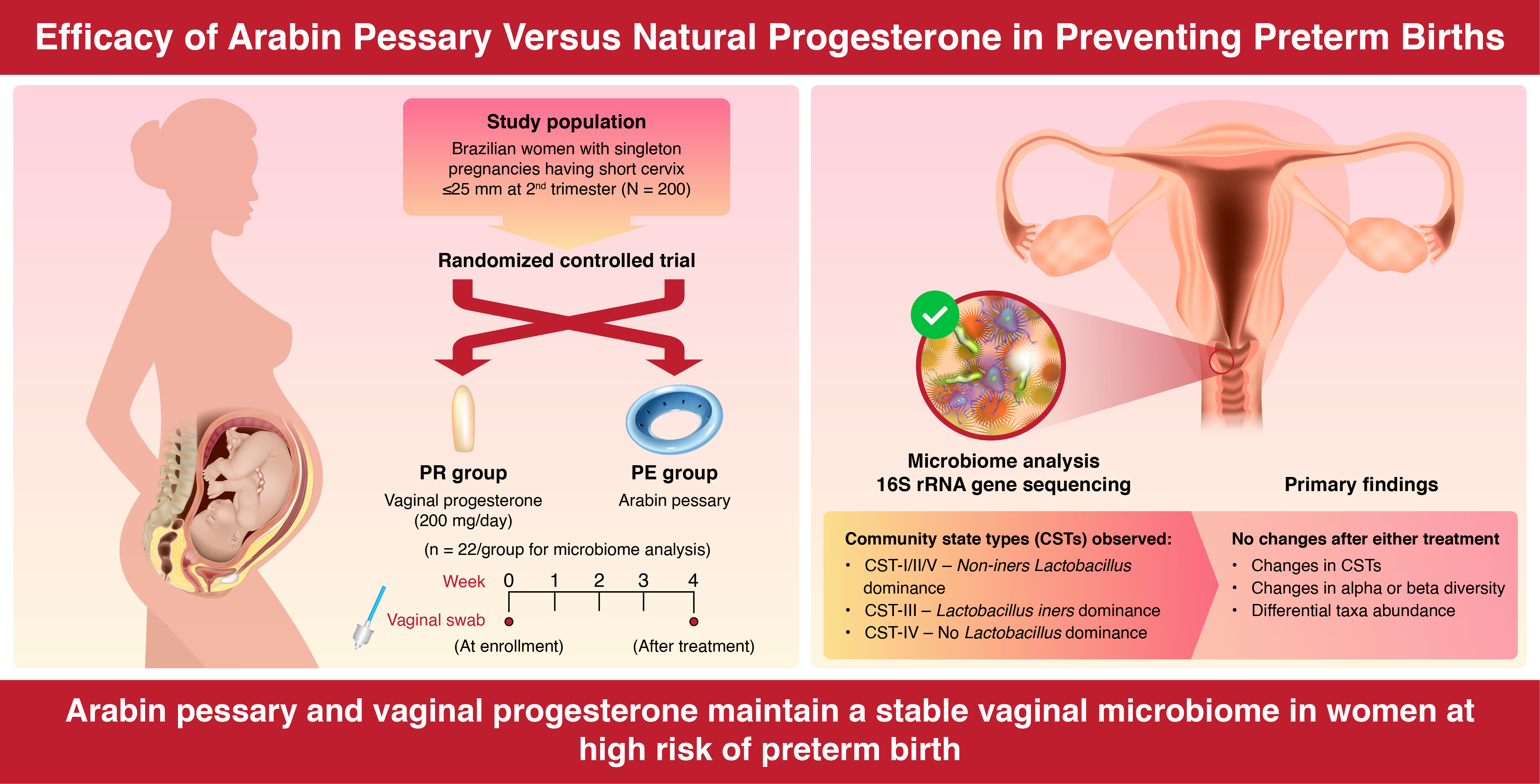 - Amorim Filho, A.G.; Martins, R.C.R.; Franco, L.A.M.; Marinelli, J.V.; Peres, S.V.; Francisco, R.P.; Carvalho, M.H. Effect of the Arabin Pessary and Natural Progesterone on the Vaginal Microbiome. Res. Sq. 2023; preprint (version 1). [Google Scholar] [CrossRef]
