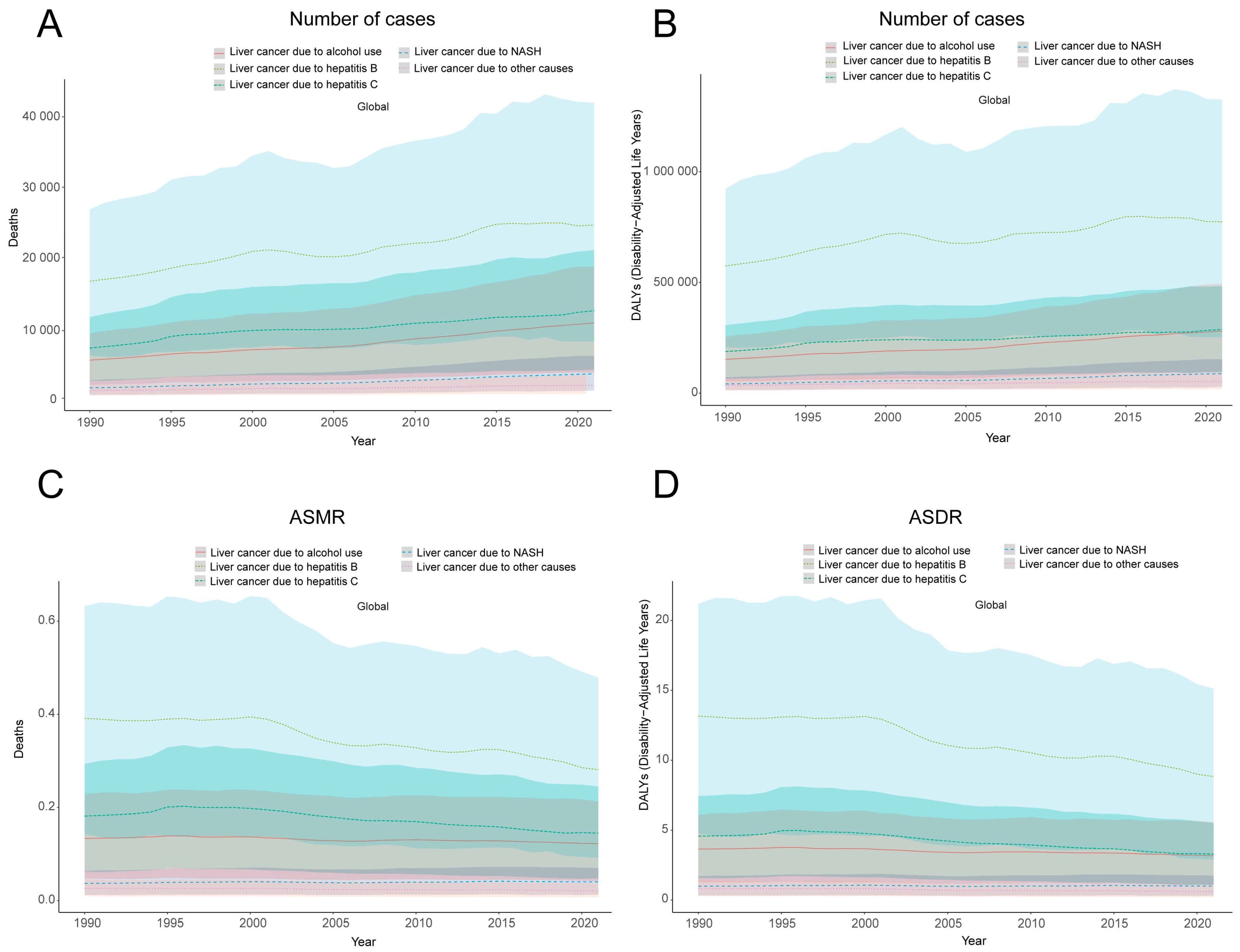 | Liver cancer due to other causes | 1093.04  (393.63–1877.90)  | 0.03  (0.01–0.05)  | 1849.23  (646.42–3235.51)  | 0.02 (0.01–0.04)  | −0.73 (−0.82–−0.65) | Down | |