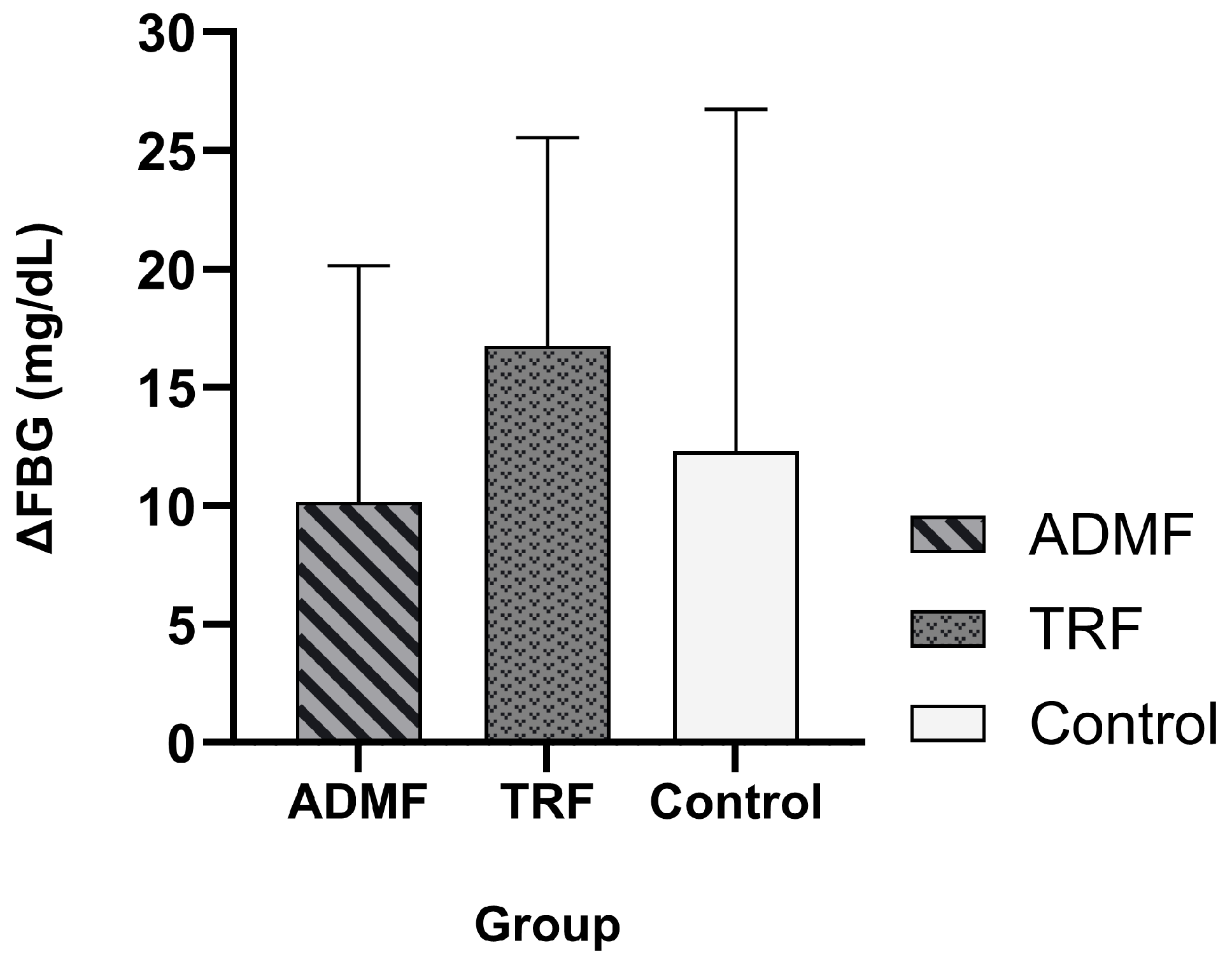 | FBG (mg/dL) | ADMF (n = 7) | 102 ± 10.81 | 112.14 ± 6.06 | 0.036 * |