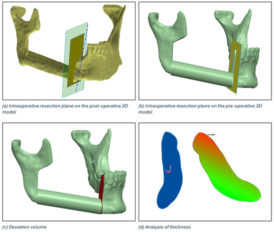- Positioning of the intraoperative resection plane on the 3D model of the postoperative mandible (Figure 7a).