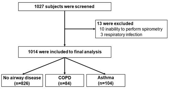 | Characteristics | Total (n = 1014) | No Airway Disease (n = 826) | Airway Disease (n = 188) | p-Value |