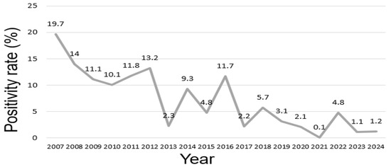 APA StyleHan, J. S., Jang, S. H., Jeon, J.-S., & Kim, J. K. (2025). Long-Term Trends in Respiratory Syncytial Virus A Infections (2007–2024) in Korea. Diseases, 13(5), 147. https://doi.org/10.3390/diseases13050147