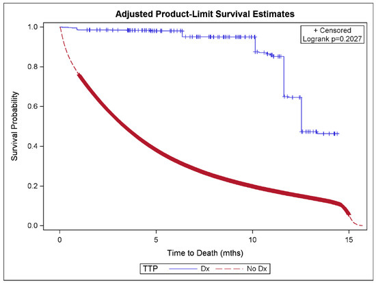 Figure 1 illustrates the Kaplan–Meier curve for mortality by TPE-treated TTP;