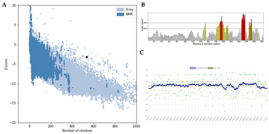 - Wiederstein, M.; Sippl, M.J. ProSA-web: Interactive web service for the recognition of errors in three-dimensional structures of proteins. Nucleic Acids Res. 2007, 35, W407–W410. [Google Scholar] [CrossRef] [PubMed]
