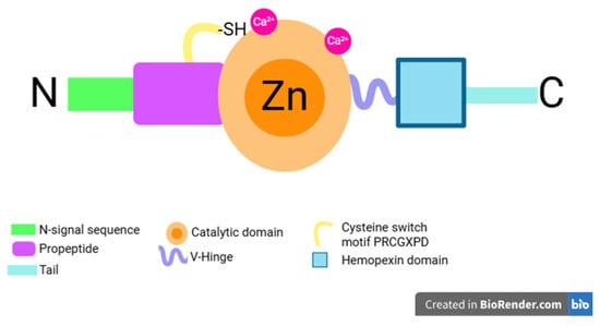Common structure of MMPs. Created in BioRender. Mendoza-Juárez, D (2025) https://app.biorender.com/illustrations/684c975b4a8a56ff43ee9a39.