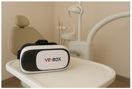 Participants in this group received exposure therapy via a custom-designed Virtual Reality Exposure Therapy (VRET) protocol. The virtual environment was delivered using VR-BOX head-mounted glasses with integrated lenses (VR-BOX, Shenzhen, China), as shown in Figure 1, allowing for high-fidelity 3D simulation. The VR environment was developed using interactive software designed to replicate a typical dental clinic setting.