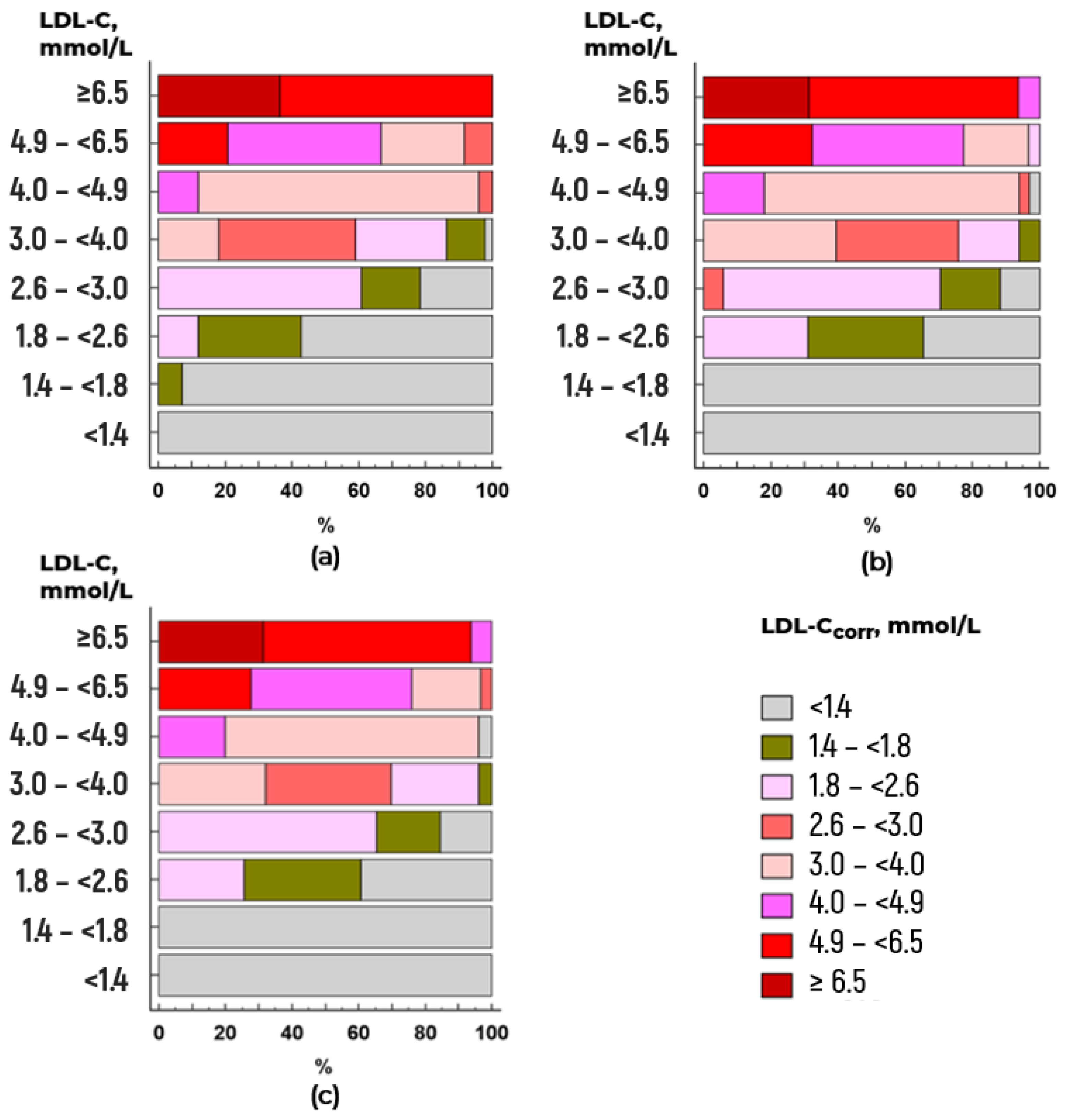 29]. The assessment of the contribution of Lp(a)-C to the LDL-C determined by a direct method or by calculation, the possibility of considering the adjusted LDL-C both in clinical work and in scientific research, in our opinion, is one of the reasons for including Lp(a) in the lipid panel. Just as the existing limitations of the Friedewald formula are not an obstacle to its long-term use, the use of the LDL-C