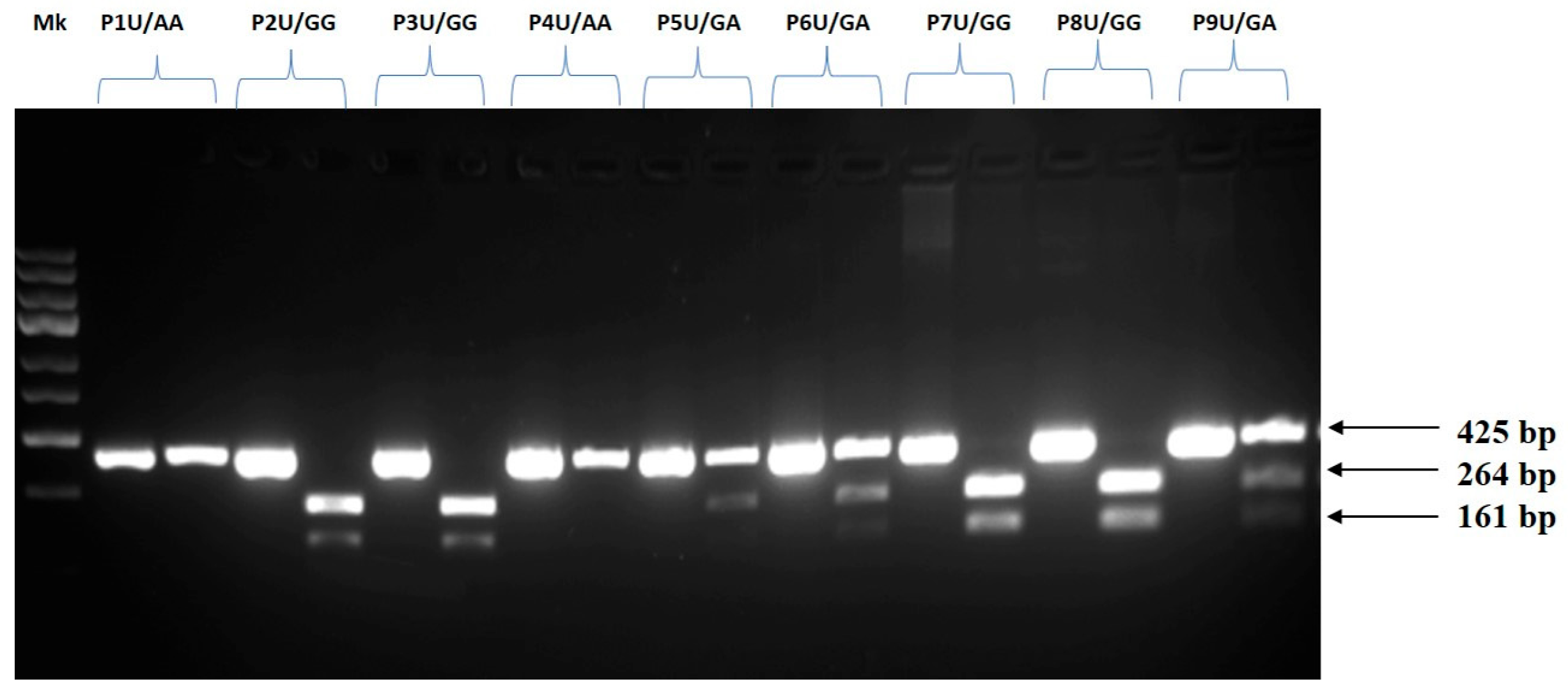 | GG | 9 (90.0%) | 1 (10.0%) | 10 | |