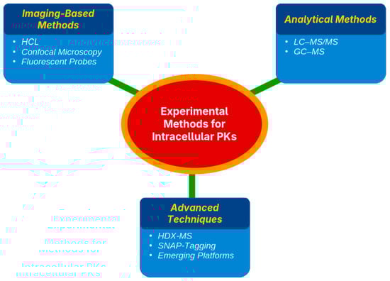 Advanced approaches such as HDX-MS and SNAP-tagging provide mechanistic insights into drug–target interactions within cells. However, they are technically demanding, costly, and limited to expert laboratories. No method alone fully addresses intracellular PK complexity; integrated approaches, such as microscopy for localization and LC-MS/MS for quantification, yield comprehensive insights into drug distribution and effects [46,47]. Table 2 synthesizes these methodologies, highlighting the optimal integration of spatial, temporal, and quantitative data.