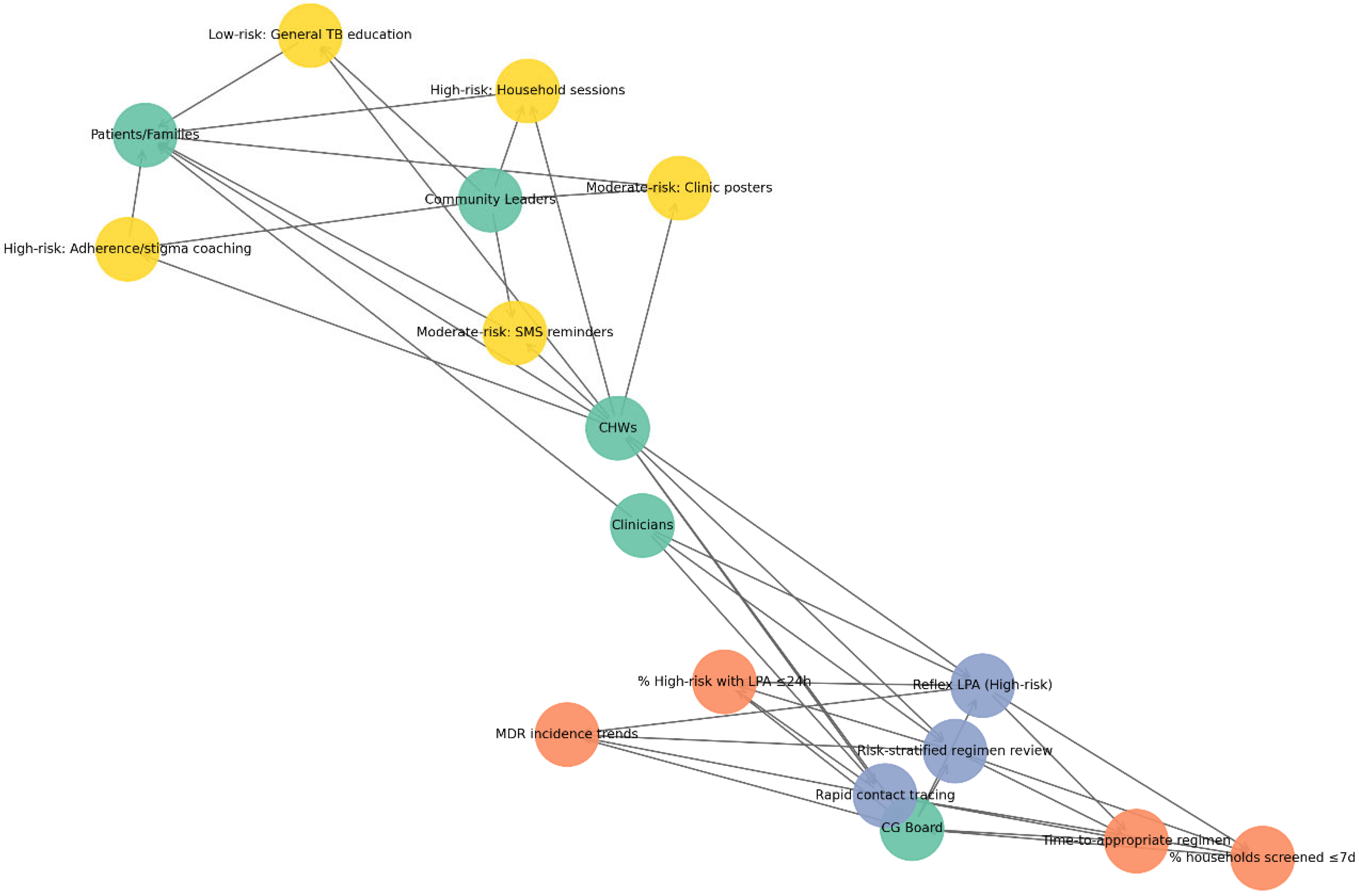 | High-risk (>30%) | 18% | Reflex LPA testing; immediate regimen review; prioritized household screening. | Reduced median time to appropriate regimen (14 → ~3 days); increased early detection of secondary cases (~20%); potential reduction in progression from isoniazid-resistant TB to MDR-TB (~12–15%). |