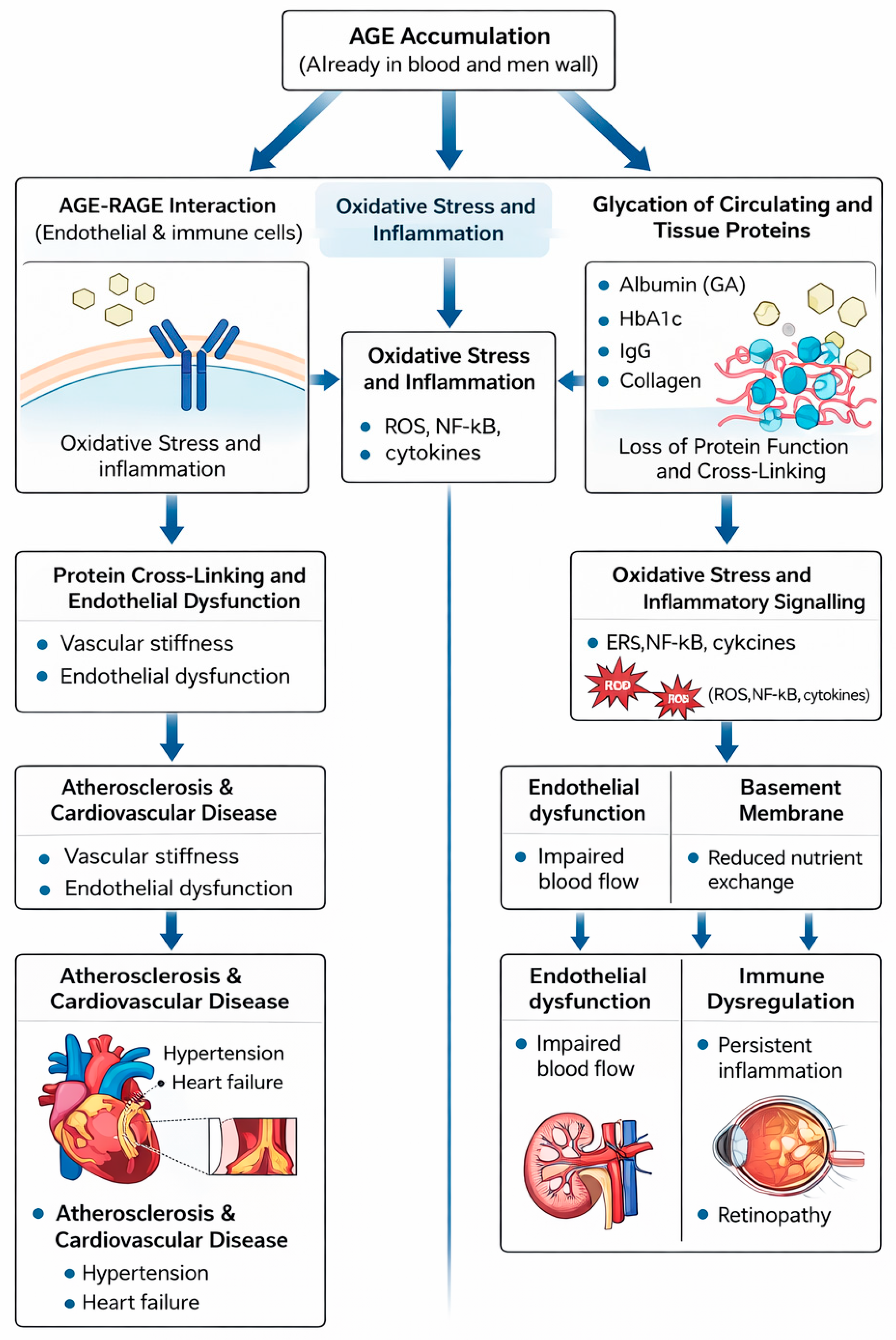 - Sharma, N.; Kumar, P.; Shukla, K.S.; Maheshwari, S. AGE RAGE Pathways: Cardiovascular Disease and Oxidative Stress. Drug Res. 2023, 73, 408–411. [Google Scholar] [CrossRef]