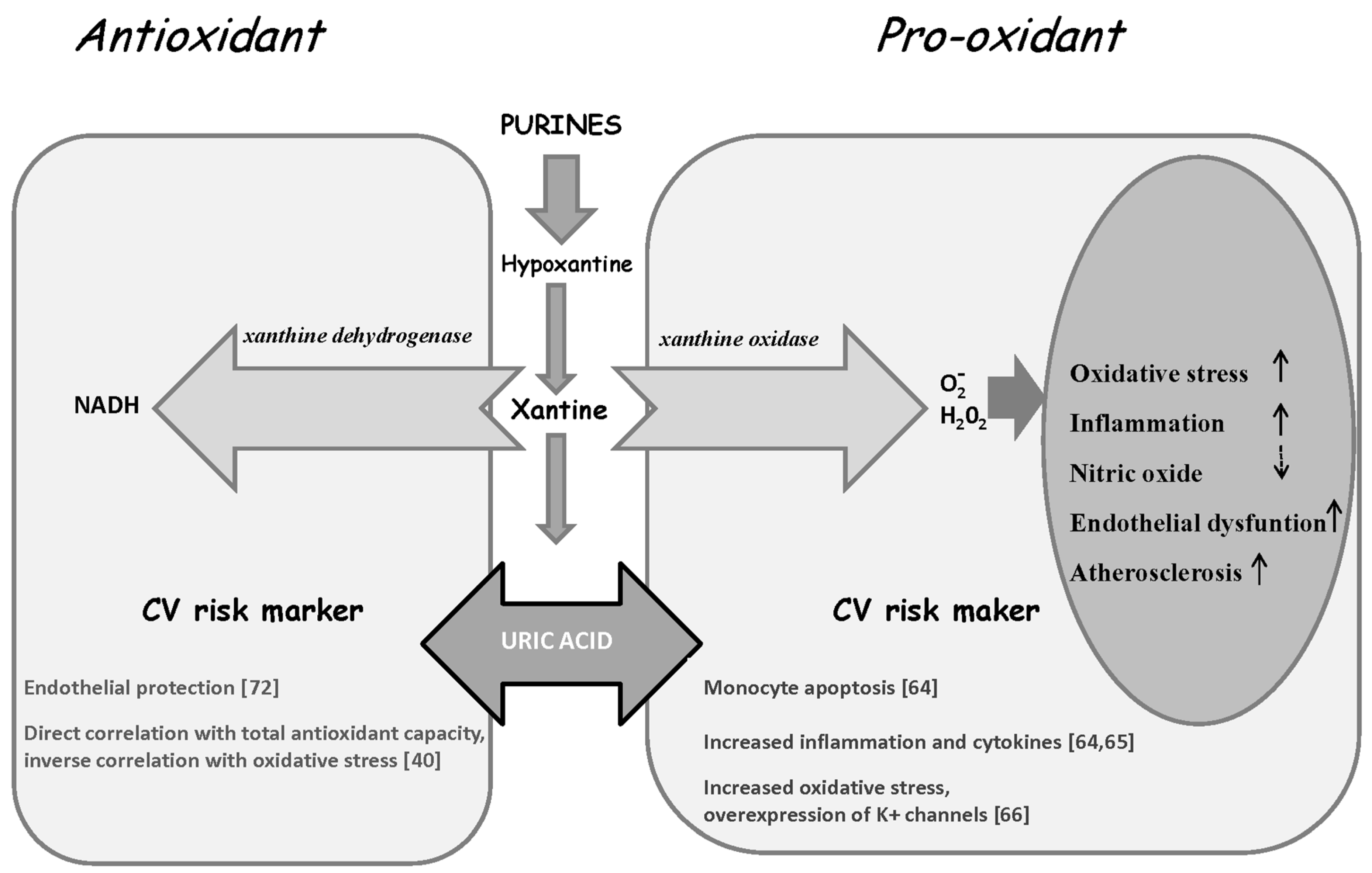 Duality of UA, which can shift from the protective antioxidant capacity to detrimental pro-oxidizing and pro-atherogenic effects according to concentration and the surrounding microenvironment.