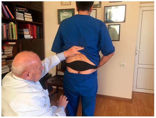 Men in the treatment group after the screening were given physiotherapeutic device. This physiotherapeutic device provides a method of treating an affected prostate by the application of a special mixture of waxes (thermoelement) topically to the skin in its projection. This thermoelement is able to accumulate the emitted body heat, and thus turns into a source of energy itself. Thus, DATD provides TT. It applies the thermoelement tightly to the coccyx area, so it overcomes the skin barrier, spreading energy toward the prostate. DATD is an elastic neoprene belt that keeps a thermoelement in the projection of prostate for a prolonged period of time. The thermoelement allows body heat accumulation and acts as the heat source for the prostate. The neoprene belt keeps the thermoelement tightly applied to the skin and does not allow heat dissipation (Figure 1).