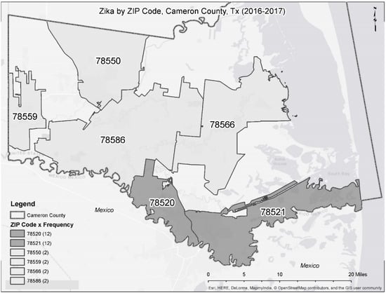 Figure 1. Zika by ZIP Code, Cameron County, Tx (2016–2017).