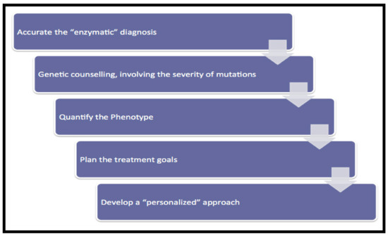 The personalized management of the treatment for type I GD patients requires five stages [33] (Figure 5):