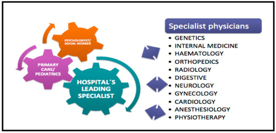 Within a GD multidisciplinary team, it is essential that an expert leads and coordinates all aspects of care including social and psychological support. They need to work closely with the other relevant hospital specialist physicians in order to develop a personal model for treatment and management. A specialist in Internal Medicine is an ideal candidate to lead this approach because of his integrated vision of the patient, but anyone with experience can develop this role which to a certain extent should reflect the organization of each hospital (Figure 3).