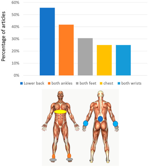 | [23] | 104 | 2.5 ± 0.6 | x | x | wrists (2), chest (1) | 6 | x | x | x | x | x | x | x | ||||||||||
