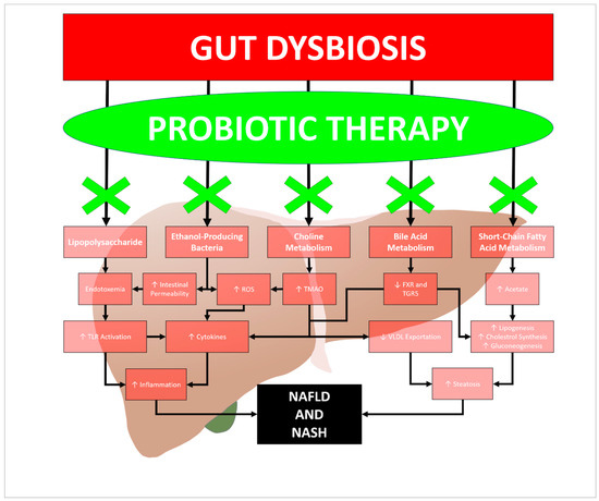 Nonalcoholic fatty liver disease (NAFLD) and its progressive subset, nonalcoholic steatohepatitis (NASH), affect a significant proportion of the population. However, no medications are currently approved for the treatment of NAFLD; the primary therapeutic intervention is lifestyle modification through diet and exercise [1,2,3]. The focus of this article is to review the role of the gut microbiome and probiotics in patients with NAFLD and its progressive subset nonalcoholic steatohepatitis (NASH).