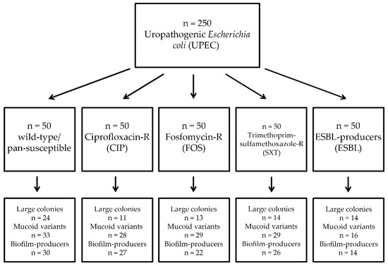- Soto, S.M.; Smithson, A.; Martinez, J.; Horcajada, J.P.; Mensa, J.; Vila, J. Biofilm Formation in Uropathogenic Escherichia coli Strains: Relationship With Prostatitis, Urovirulence Factors and Antimicrobial Resistance. J. Urol. 2007, 177, 365–368. [Google Scholar] [CrossRef]