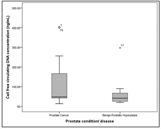 APA StyleCondappa, A., McGrowder, D., Aiken, W., McLaughlin, W., & Gossell-Williams, M. (2020). Evaluation of Plasma Circulating Cell Free DNA Concentration and Integrity in Patients with Prostate Cancer in Jamaica: A Preliminary Study. Diseases, 8(3), 34. https://doi.org/10.3390/diseases8030034