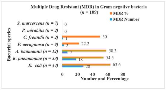 3.3. Multidrug Resistance (MDR) among Gram-Negative Organisms