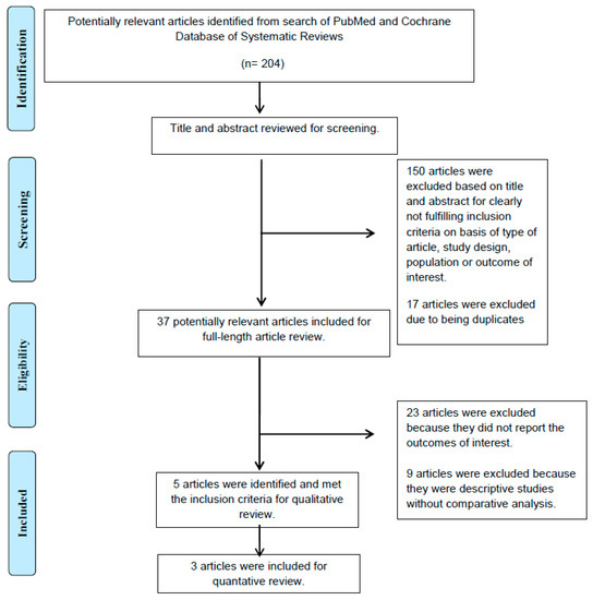 A total of 204 potentially eligible articles were identified using our search strategy. After the exclusion of 17 duplicate articles and 150 articles, because they were case reports, correspondences, review articles, in vitro studies, pediatric patient population, or animal studies, 37 articles remained for full-length review. Twenty-three of them were excluded from the full-length review as they did not report the outcome of interest, while nine articles were excluded because they were descriptive studies without comparative analysis.