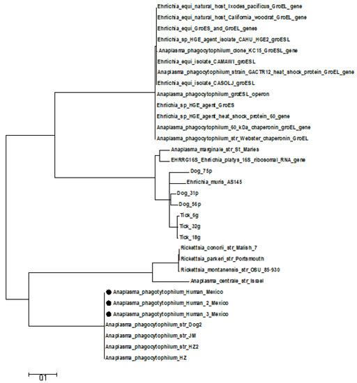 It is necessary to conduct further studies that include intentional and systemic testing for potential coinfections in these patients. Efforts to isolate the bacteria were unsuccessful. It is known that A. phagocytophilum is a bacterium that is difficult to cultivate in liquid media, as well as the prolonged time required, approximately 1.2 months. Understanding the dynamics of disease transmission in the human–domestic and wildlife cycle in a national serological study is necessary, in which a secondary sample of patients is obtained in conjunction with a risk level map. Nevertheless, this particular study demonstrates sufficient evidence to recognize A. phagocytophilum as the causative agent of HGA in Mexico. Health institutions and medical practitioners in general should include diagnostic testing for this infection. In addition, populations at risk should recognize it as an emerging infectious disease transmitted in Mexico.
