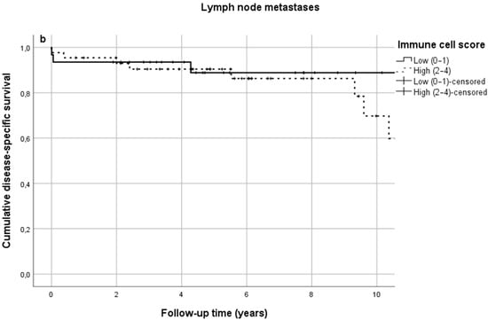 3.2. Immune Cell Score—No Prognostic Value in Primary Tumors or Lymph Node Metastases