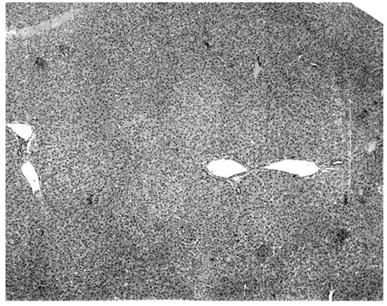 Normal liver of a KKV-negative naturally moribund free-tailed bat.