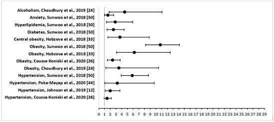 Forest Plot of Odds Ratio with 95% Confidence Intervals for Risk Factors or Comorbidities of Severe Obstructive Sleep Apnea.