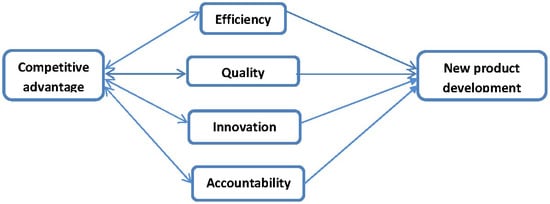 Open Innovation is a new paradigm that assumes that firms can and should use external ideas as well as internal ideas and internal and external paths to market, as the firms look to advance their technology. Open innovation is defined as the use of purposive inflows and outflows of knowledge to accelerate internal innovation, and extend the markets for external use of innovation, respectively []. With the emphasis on the importance of open innovation, there have been various studies in several dimensions such as firm, industry. Firstly, in the dimension of a firm, the analysis of the acquisition of technology and commercialization strategies, R&D efficiency, corporate interactions, and strategic profit analysis, as well as technological innovation assessments show the positive effects of open innovation [,,]. Open innovation principles allow the penetration of novel technology, products, or market landscapes which extend beyond the actual core business of firms, and which would be difficult to discover by individual organizations []. What are the merits of open innovation in new product development processes? Firstly, with external technology, firms can reduce costs and time []. When adopting open innovation, firms make use of technologies from the external market. Secondly, firms can produce new products with different resources outside. By utilizing different ideas or technologies, firms develop new unique products and differentiate with other firms.