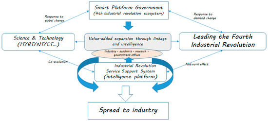 Finally, the Fourth Industrial Revolution can be defined as the revolutionary change that occurs when IT proliferates in all industries, that is, the primary, secondary, and tertiary industries. In other words, it is a result of the horizontal expansion of IT. Therefore, the Fourth Industrial Revolution features the creative connection between technology and the market in all industries based on IT, that is, the creative and open combination of technology and the market through open innovation, or growth based on the open business model [9]. However, the characteristics of the Fourth Industrial Revolution can be completely defined only when technical innovation is combined with institutional innovation as in the Second Industrial Revolution.