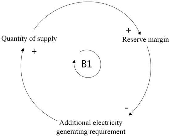 In the B1 loop, it can be seen that a stable negative loop can be formed since there is a demand for additional power generation according to the power reserve ratio, which in turn affects the power supply and eventually changes the power reserve ratio. That is, if the power reserve ratio is high, the demand for additional power generation is reduced, the amount of power supply is decreased, and it causes the power reserve to be small. On the other hand, if the power reserve ratio is low, the demand for additional production of electric power in the industrial and household sectors may increase. Therefore, additional power needs to be produced, which means that the supply in the electricity market will increase. As the power supply increases, a stable and virtuous cycle in which the power reserve ratio increases will continue.